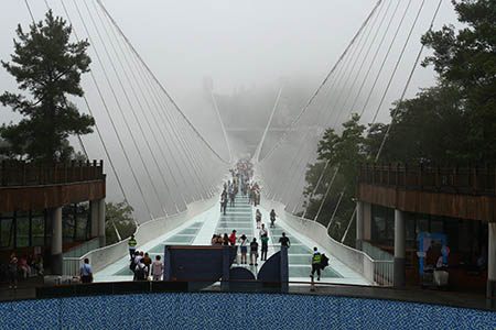 ガラス橋の入口。これは無理か……? 無理でした。視界ゼロのガラス橋。