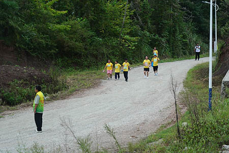 添乗員さんがガラス橋の向こう側まで戻るなど、30分くらいロスした結果、このおじいさん、なんと駐車場まで戻っていた。