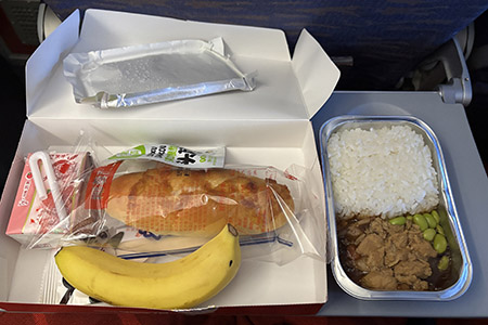 飛行機でもとにかく休む。ここで動画を見る優先度はとても低い。軽食には四川航空らしくチリソースを加えることが出来たが、辛いものは回避する。