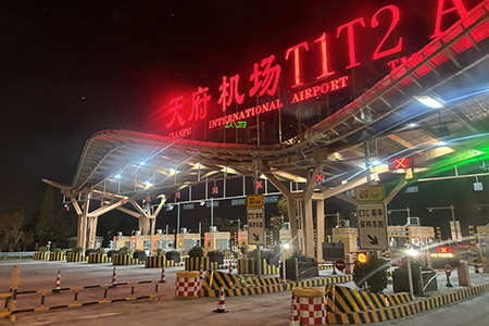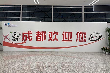 成都の空港到着。 移動中にスマホでパパッと撮影。