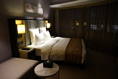 部屋からスマホで撮影。目で見たより写真の方が華やかかも。 部屋。連泊じゃないし、例のごとく寝るだけ。素敵な部屋だが仕方ない。