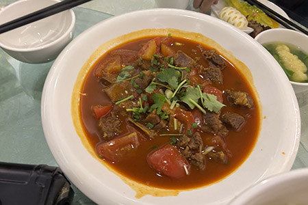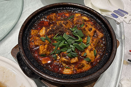 - 14時、麻婆豆腐発祥の店で麻婆豆腐を食べてバスに戻ってきた。だんだん辛くなるコース料理。麻婆豆腐は山椒の痺れが強い味だった。日本の激辛ラーメンより平気だった。