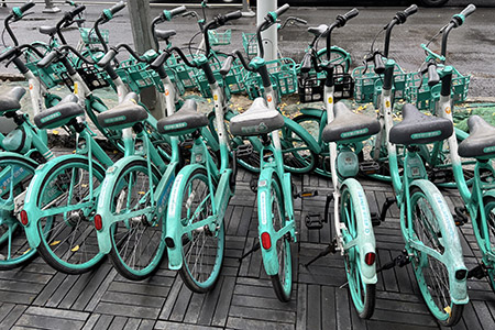張家界でもそうだったが、レンタサイクルたくさん。 パンダ。日本の感覚だと、20元でも安い。