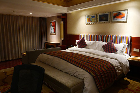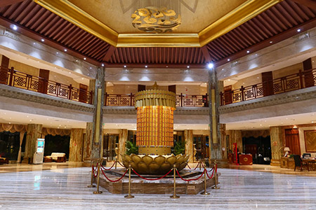 ホテル着。 ロビー。ホテルの中、至るところが寒い。