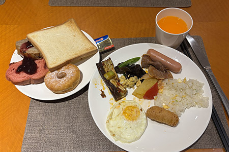 朝食会場。 ぬいぐるみがいっぱい置いてあって可愛い。