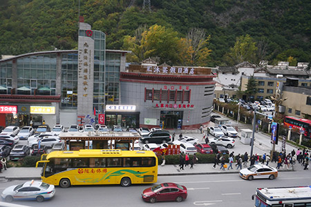 - 13時。しょぼいバイキングの食事を終えて、集合待ち。九寨溝唯一のレストランとのことだが、その割に人がいなかった。納得の内容だった。