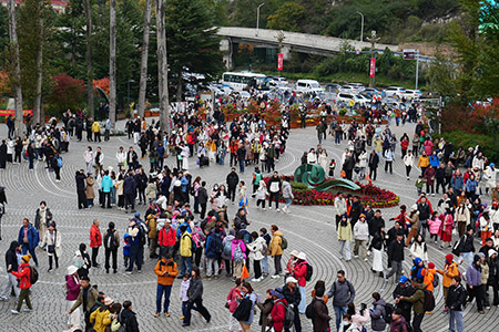 すさまじい数の人。あと、ガイドさん、歩くの速い。乗り合いバス乗り場は大混雑だったが、我々は今日は一日専用バスなので楽ちん。