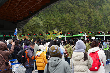 8時40分。ツアーの観光バスを降りてから20分ほど歩き、専用バスに乗り換える。