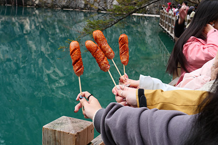 五花海は混雑がひどいので時間を決めて自由行動になったが、一周回ったら時間ギリギリだった。全員間に合っていたから、写真をそんなに撮らずに回るだけならそんなに時間がかからないのかも。