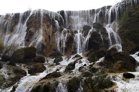 天気は雨の心配のない曇り。九寨溝、池も綺麗だが、とにかく滝がすごい。