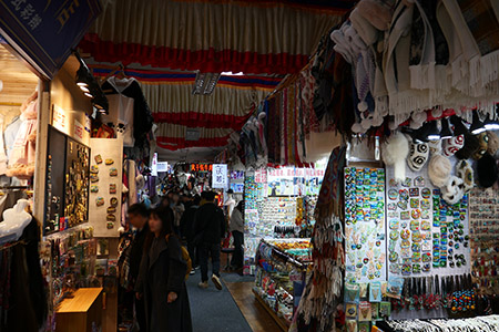 ランチバイキング。驚くほどしょぼい。 土産物屋が軒を連ねる。