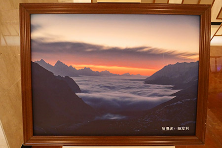 | 食事をした建物の外側。 | ロビーには写真が何枚か展示されていた。 |